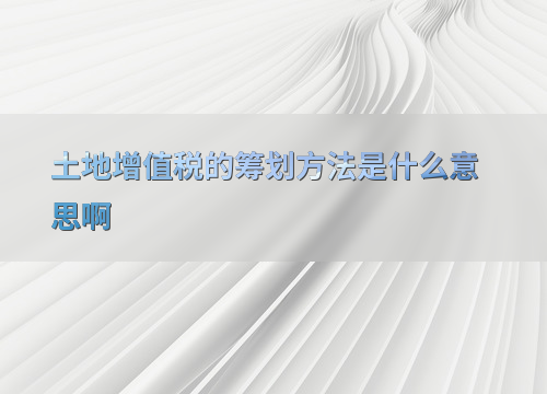 土地增值税的筹划方法是什么意思啊