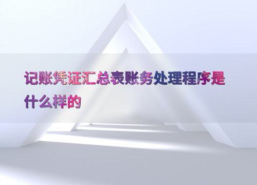 记账凭证汇总表账务处理程序是什么样的