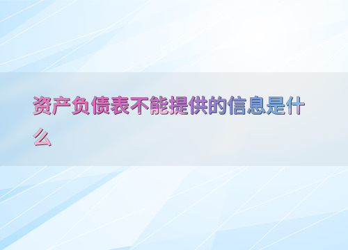 资产负债表不能提供的信息是什么