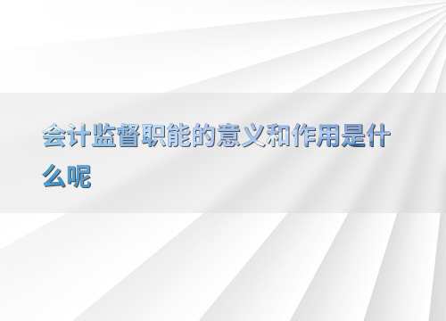 会计监督职能的意义和作用是什么呢