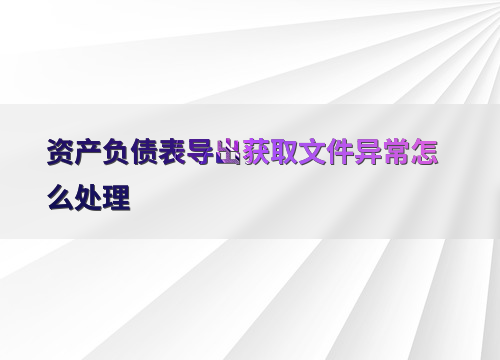 如何预防资产负债表导出文件异常的发生?答:定期维护和更新财务软件及相关的硬件设备,保持系统的最佳运行状态。同时,建立良好的数据备份机制,确保即使出现文件丢失或损坏,也能快速恢复数据。