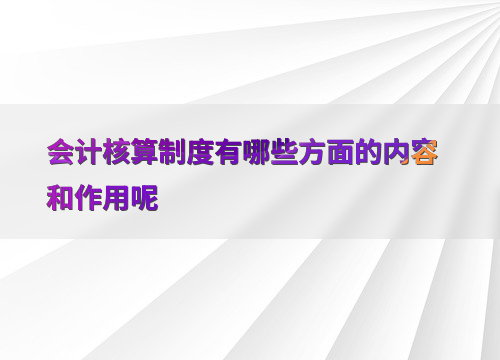 会计核算制度是企业财务管理的基础,它涵盖了多个关键领域。