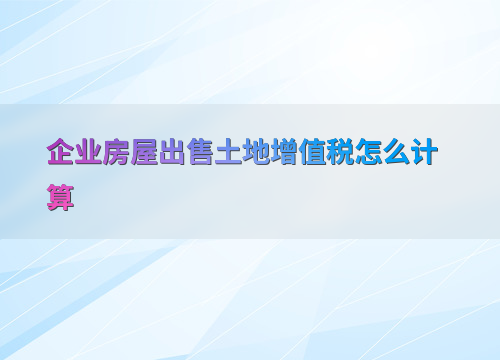企业房屋出售土地增值税计算方法