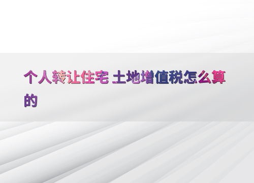 在进行个人住宅转让时,了解土地增值税的计算方法至关重要。