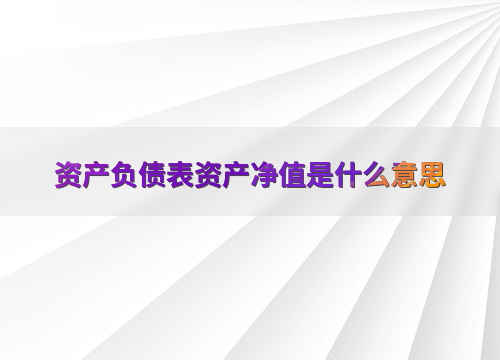 资产负债表资产净值是什么意思