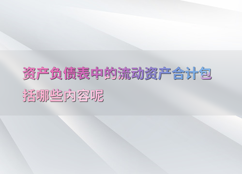 在资产负债表中,流动资产是指企业在一个营业周期内(通常为一年)可以变现或耗用的资产。
