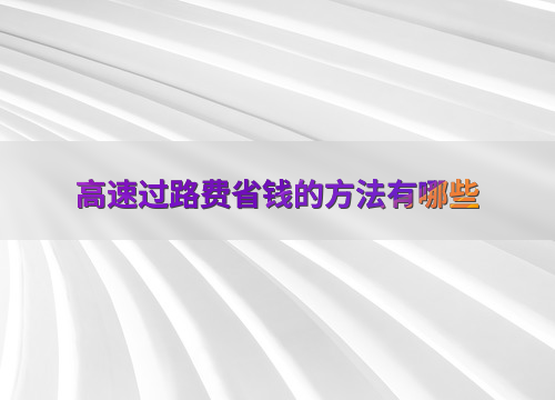 高速过路费省钱的方法有哪些