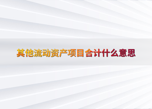 在财务报表中,其他流动资产项目合计指的是企业在一年内或一个营业周期内可以变现、耗用的全部流动资产的总和。