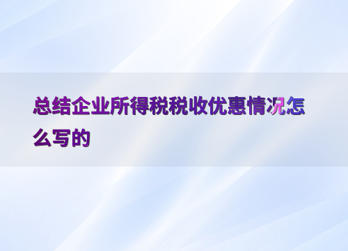 总结企业所得税税收优惠情况怎么写的