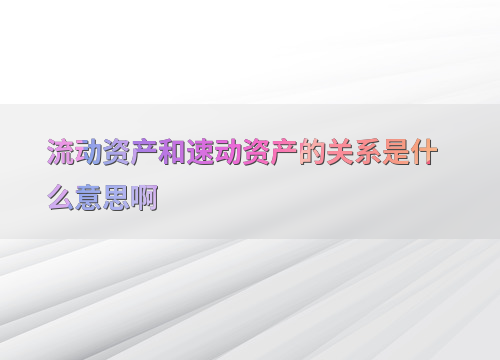 流动资产和速动资产的关系是什么意思啊