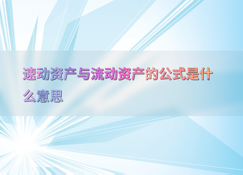 速动资产与流动资产的公式是什么意思