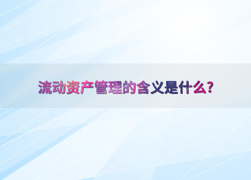 流动资产管理的含义是什么?