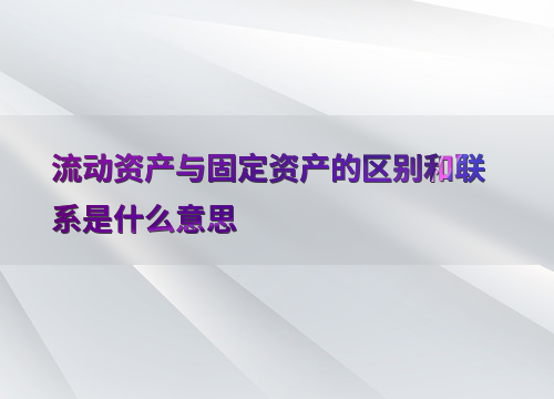 流动资产与固定资产的区别和联系是什么意思