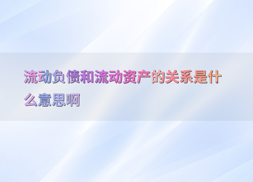 流动负债和流动资产的关系是什么意思啊