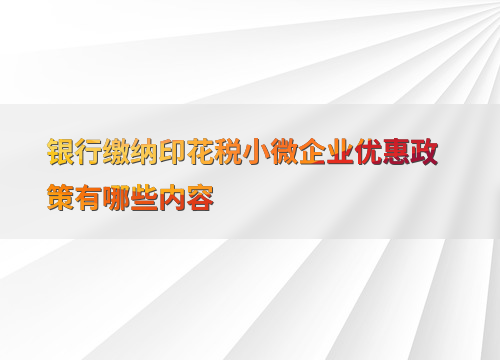 银行缴纳印花税小微企业优惠政策有哪些内容