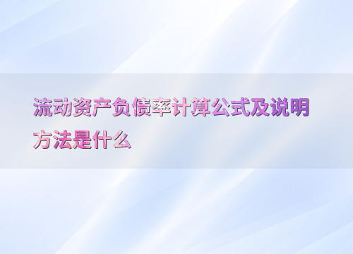 流动资产负债率计算公式及说明方法