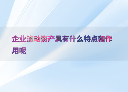 企业流动资产具有什么特点和作用呢