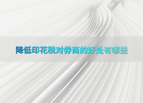 降低印花税对券商的好处有哪些
