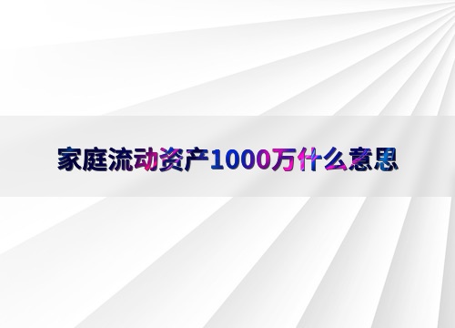 家庭流动资产1000万什么意思