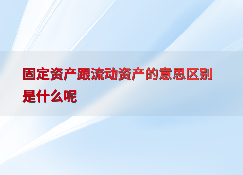 固定资产跟流动资产的意思区别是什么呢