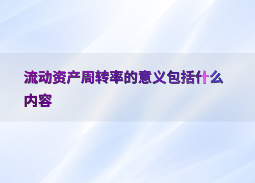流动资产周转率的意义包括什么内容