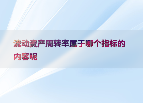 流动资产周转率属于哪个指标的内容呢