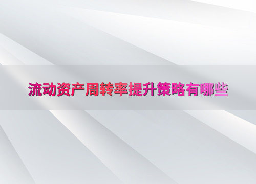 流动资产周转率提升策略有哪些