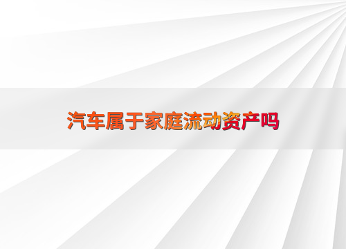 对于汽车是否属于家庭流动资产,这取决于其使用目的和市场流动性。如果一辆汽车主要用于家庭日常出行,并且不打算短期内出售,则它更接近于固定资产。然而,若该车辆是用于短期租赁业务,或是计划在短期内转售以获取利润,那么它则可能被视为流动资产。公式上,我们可以用 L = V - D 来表示,其中 L 是流动性价值,V 是车辆市场价值,D 是折旧。