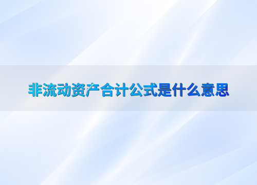 非流动资产合计公式是什么意思