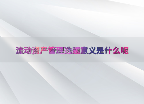 流动资产管理选题意义是什么呢