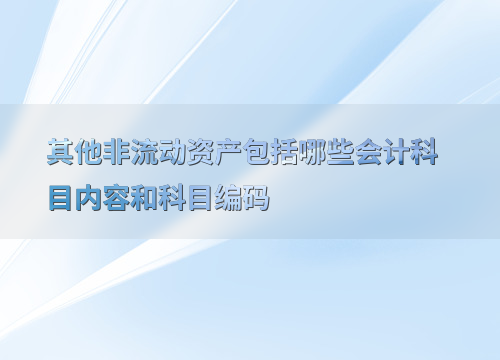具体来说,其他非流动资产可能包含以下几类:长期股权投资(科目编码:1501)、固定资产(科目编码:1601)、无形资产(科目编码:1701)和长期待摊费用(科目编码:2202)。这些科目的设置有助于企业更准确地反映其长期资源的价值和使用情况。