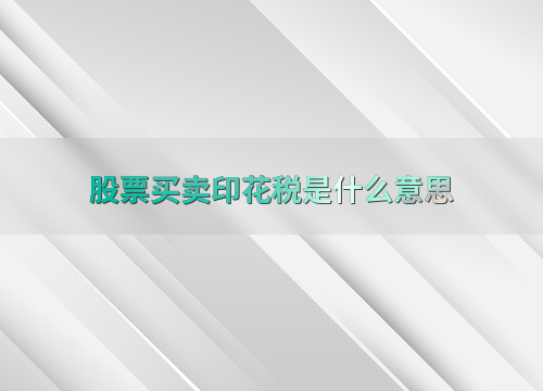 股票买卖印花税是什么意思