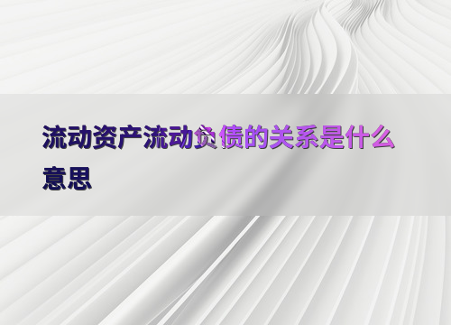流动资产流动负债的关系是什么意思