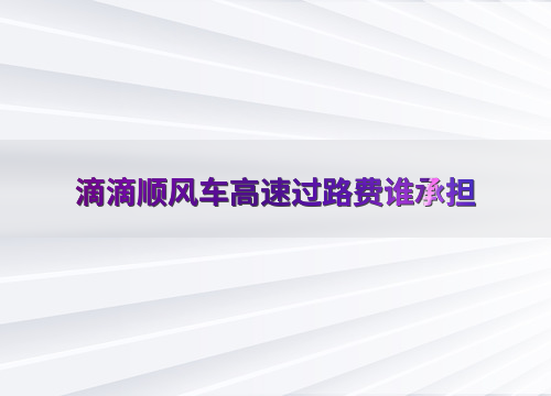 滴滴顺风车高速过路费谁承担