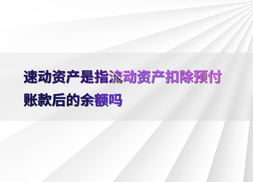 在财务会计中,速动资产(Quick Assets)是指那些可以迅速转换为现金或等同于现金的流动资产。