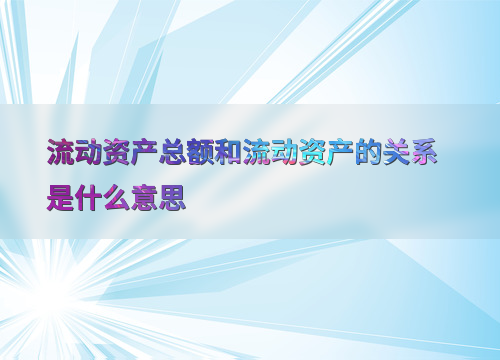 在财务会计中,流动资产总额是指企业在一年内或一个营业周期内可以变现或耗用的全部流动资产的价值总和。
