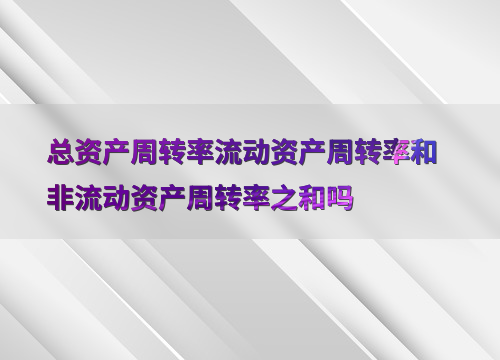 总资产周转率流动资产周转率和非流动资产周转率之和吗