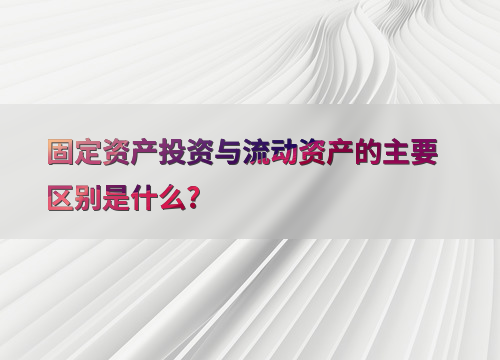 在财务管理中,固定资产和流动资产是两个重要的概念。