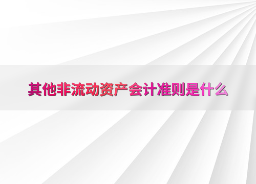 其他非流动资产会计准则是什么