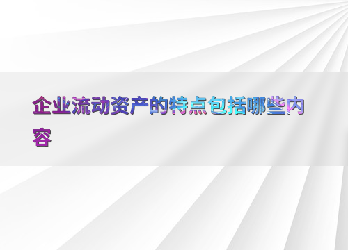 流动资产是企业在一年或一个营业周期内可以变现或耗用的资产,主要包括现金、应收账款、存货等。