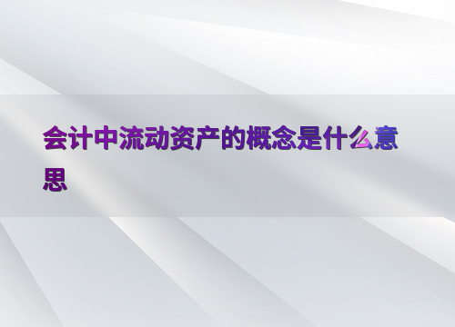 在会计学中,流动资产是指企业在一个营业周期内(通常为一年)可以转换为现金、被消耗或出售的资产。