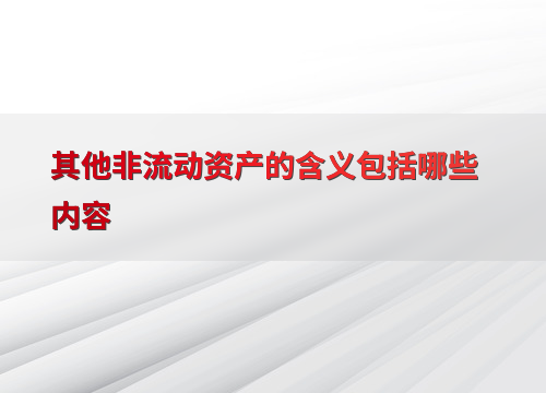 在财务会计中,其他非流动资产是指那些不归类于流动资产、固定资产或无形资产的长期资产。
