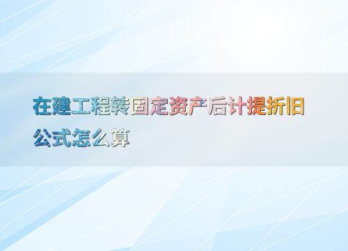 在建工程转固定资产后计提折旧公式怎么算
