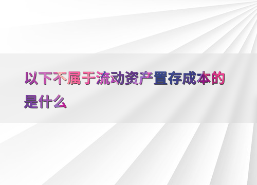 然而,并非所有与流动资产相关的成本都属于置存成本。例如,采购成本就不属于流动资产的置存成本范畴。
