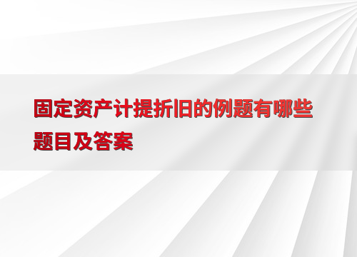 在企业的财务管理中,固定资产的折旧计算是一项重要的工作。