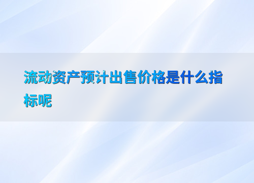 在财务会计中,流动资产预计出售价格是指企业持有的可以在一年内变现或耗用的资产,在预期市场条件下能够获得的现金流入量。