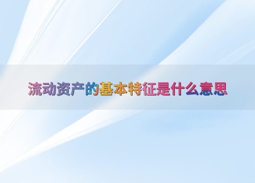 流动资产的基本特征是什么意思