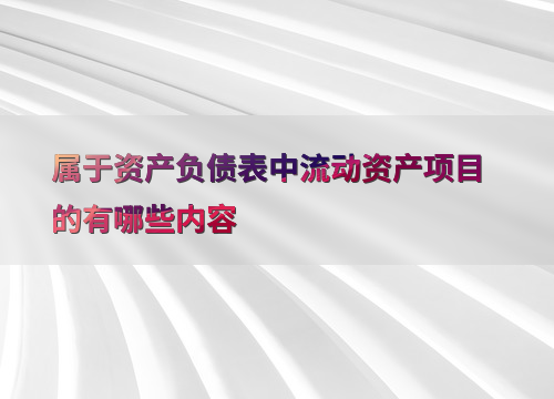 在资产负债表中,流动资产是指那些预计在一个营业周期内(通常为一年)可以转换为现金或被消耗的资产。