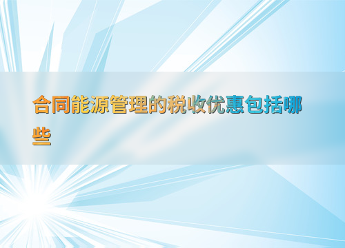 合同能源管理的税收优惠包括哪些