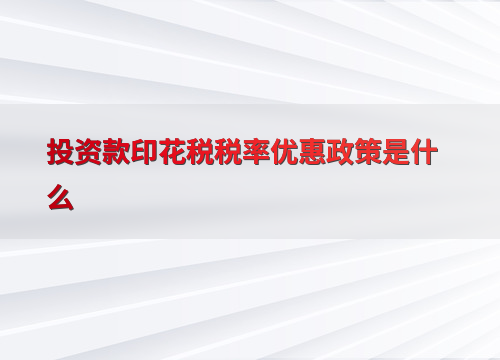 在当前的税收政策中,投资款印花税的优惠措施对于促进资本市场的健康发展具有重要意义。